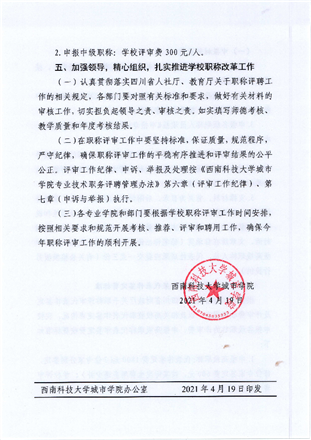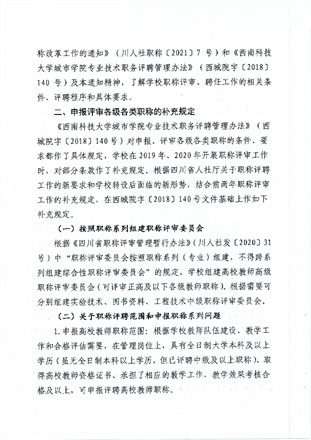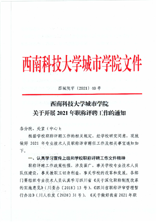 西南科技大学城市学院关于开展2021年职称评聘工作的通知